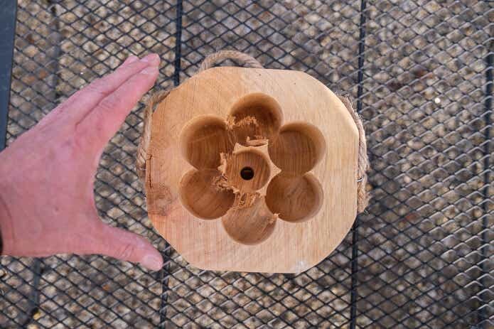 本体を取り出しました。丸太の中央がくり抜かれ、大きな穴が掘られています。なんとその穴に炭を詰めて、燃焼させるグリルなんです。形状としては七輪っぽいですね。