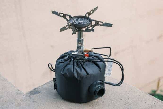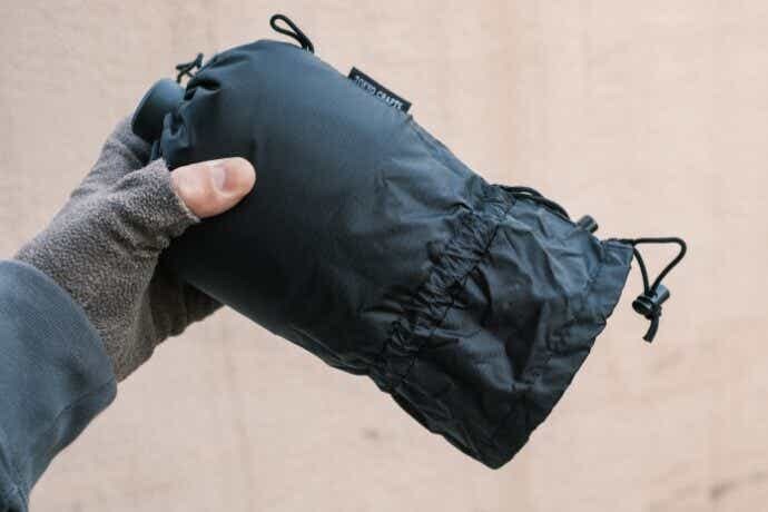 カバー自体も、裏地にウレタンフォームを使っていて火力低下を防げる工夫があり、250缶と500缶の両サイズに対応している点もうれしいポイント。さらにループ付きで、使用時も収納時も扱いやすく、アウトドアでの細かな使いやすさをよく考えてくれています。
