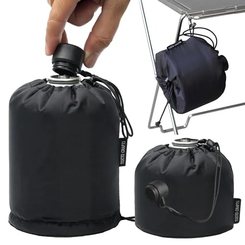 内側にはウレタンフォームを採用し、寒冷時の火力低下を軽減する工夫も。250缶・500缶の2サイズに対応し、ループ付きで持ち運びや吊り下げ収納も便利。ブラックを基調とした無骨なルックスも魅力の、実用性とデザイン性を兼ね備えた一品です。