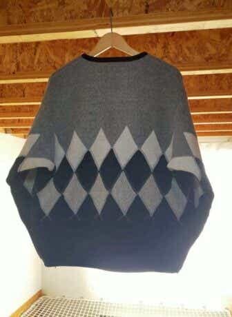 ヴィンテージを思わせるダイヤ柄とセンスのいい配色に一目惚れし、数年前に色違いを購入していて、毎年秋冬になると自然と手が伸び、かなりの頻度で着ています。今年の新色の中でこのモノトーンカラーに目が留まり、こちらも迷わず、2枚目として迎えました。