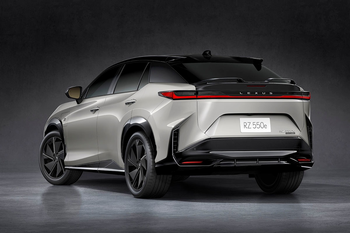 高性能スポーツモデルのRZ550e F SPORTは減衰力やスプリング定数をスポーツ仕様とした専用のシャシーを採用している。さらにエクステリアには専用のフロントロワバンパーモールやブレーキダクト、リヤスポイラー、20インチ・エアロホイールなどを採用し、空力性能と操縦安定性を追求したアグレッシブなモデルとなっている。ボディカラーには新色の「ニュートリノグレー」を加えた、モノトーン5タイプとバイトーン4タイプがラインアップされている。