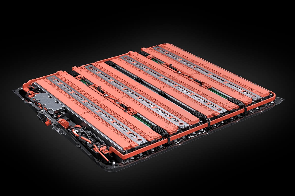 駆動用バッテリー容量は、従来の71.4kWhから74.69kWhに増大(RZ500e versionLとRZ350e versionL)され、RZ550e F SPORTは76.96kWhとなっている。搭載されるバッテリーセル数が増大されるとともにセル自体の出力特性も向上している。
