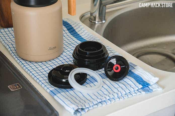 メンテがラクなのも地味に重要。フタはパカっと外れて工具いらずで分解でき、パッキン周りまで隅々洗えて衛生的なので、乾きやすさも兼ね備えています。