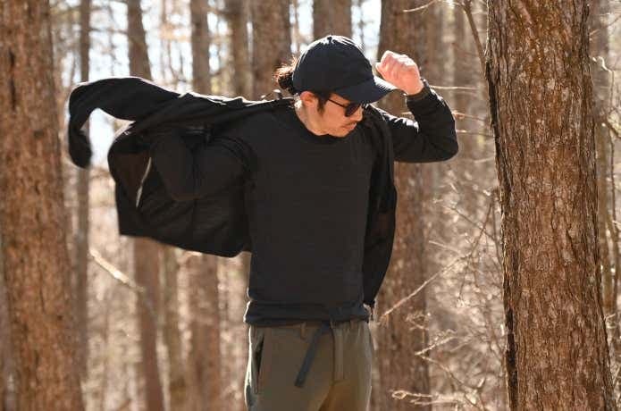 デメリットとまでは言えませんが、高い通気性を備えている分、風をしっかり通す点は理解しておきましょう。今回のテストでは強風下ではなかったものの、行動を止めて休憩に入ると、アウターを羽織らないと寒さを感じました。