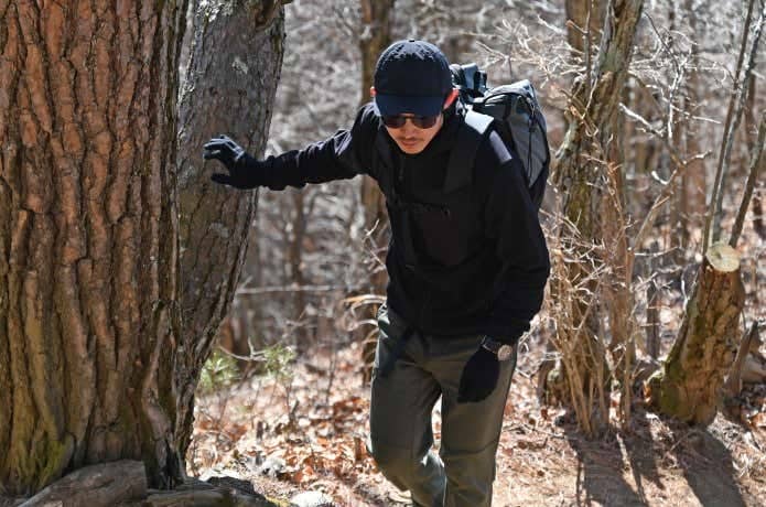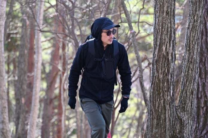 今回は中厚手のベースレイヤーの上に本製品を着用し、気温3〜5℃ほどの環境でテストしました。行動開始直後はやや肌寒さを感じたものの、歩き出して体が温まると、暑くなく寒くなくの快適な状態に。