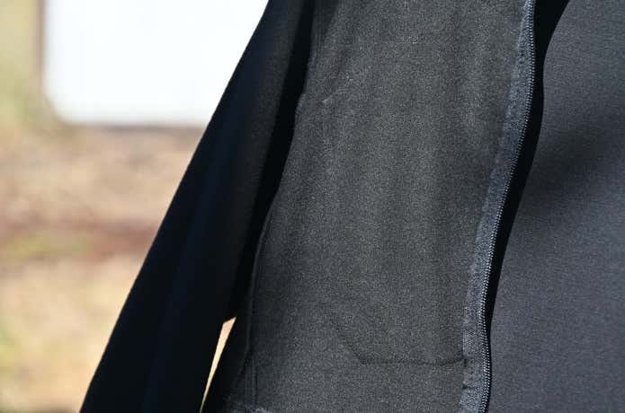 ニット生地は通気性やストレッチ性に優れる一方で、耐久面ではほつれや毛羽立ちが気になるかもしれません。今回の使用だけでは特に問題は感じませんでしたが、繰り返し着用することで、袖口や肩、背中など、擦れやすい部分を中心に毛玉が出てくる可能性はありそうです。