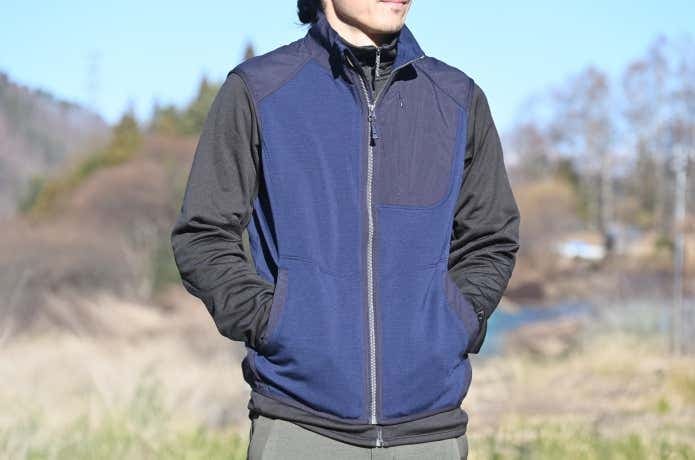 メリノテック アクティブインサレーション スタンドベスト 2,500円(税込)|身長169cm、60kg/Lサイズ着用
