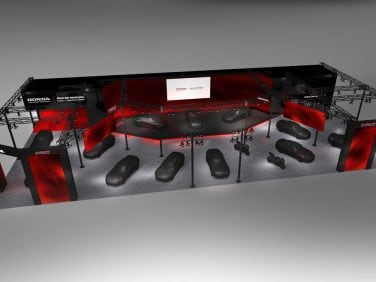 ブースのテーマ「Honda Sports DNA」は、モータースポーツを頂点とした走りに対する技術と情熱が、レース活動からクルマづくりにまで脈々と受け継がれていることを表現している。赤色を基調としたブースデザインにより夢への挑戦とクルマづくりへのこだわりを体感できるようになっている。