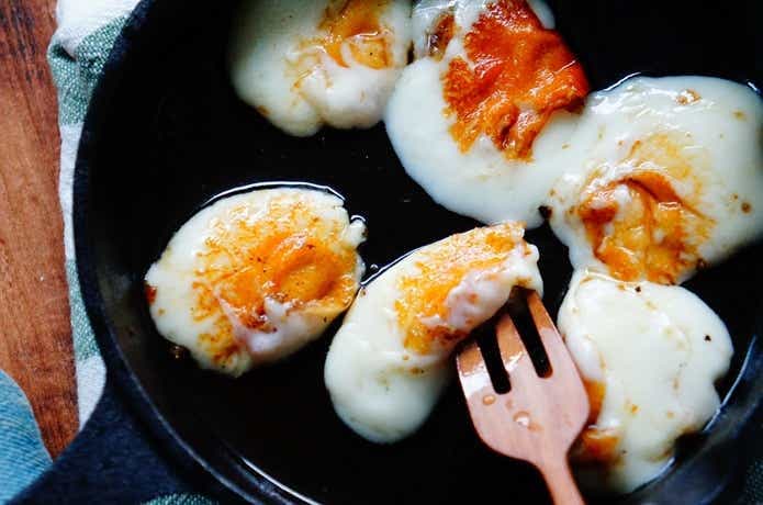 丸くて白い見た目がモッツアレラチーズのようですが、これは焼いて食べるチーズなんです!