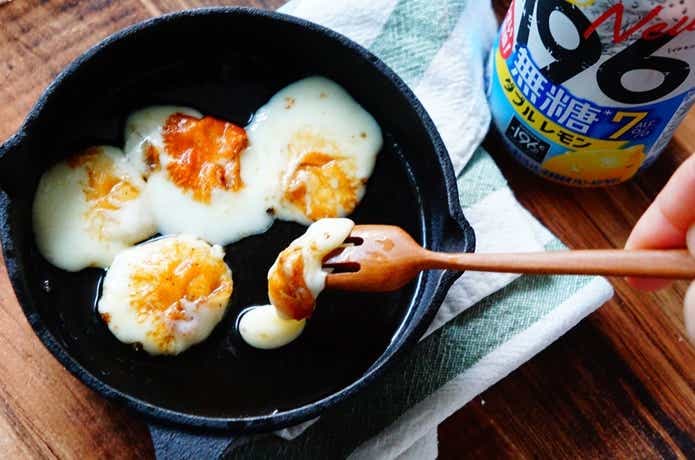 次に、スキレットやフライパンに油をひいて中火で数分焼きます。すると、チーズがとろけて円盤状に広がってきます。