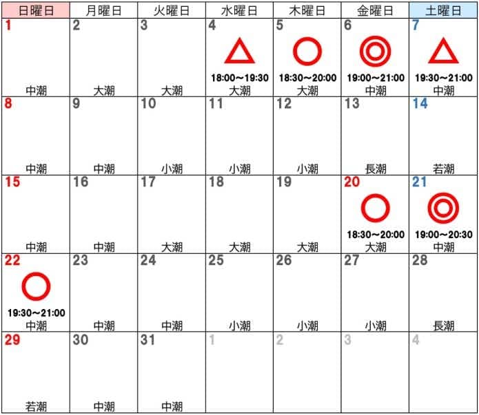 今年も筆者のホームである東京湾のバチ抜けシーズンについて、チャンスのタイミングなどを分かりやすくカレンダーにまとめました。