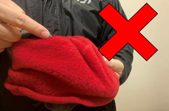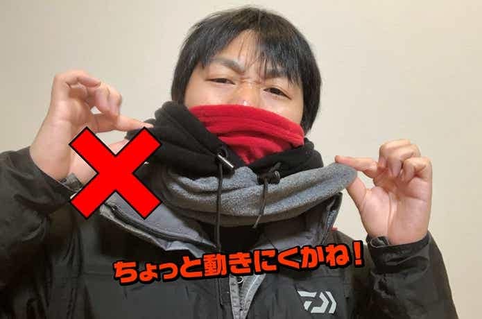 しかしこれだけでは風の差し込みがあり、かといって覆面レスラーが被るような防寒マスクは、釣りの最中にキャップを被ることが多いので手が出ませんでした。