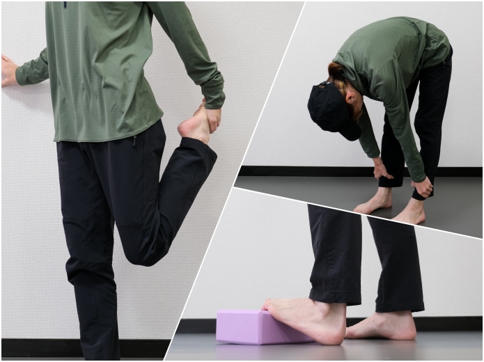 まずは、今回紹介した「筋力」「持久力」「バランス感覚」を鍛えるとレーニングの前後に、以下のストレッチを取り入れるだけでOK。ただし、トレーニング前後では、同じストレッチでもやり方を変えるのがポイントです。