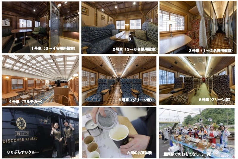 「36ぷらす3」は、九州全県を巡るD&S列車(デザイン&ストーリー列車)です。曜日ごとに異なる5つのルートを運行し、九州の魅力的な食や景色を楽しめます。