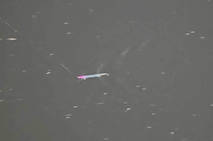 シンキングの場合は、水平〜やや尻下がりの姿勢を維持したまま、どの流速でも不規則なテイルスライドで泳ぎます。