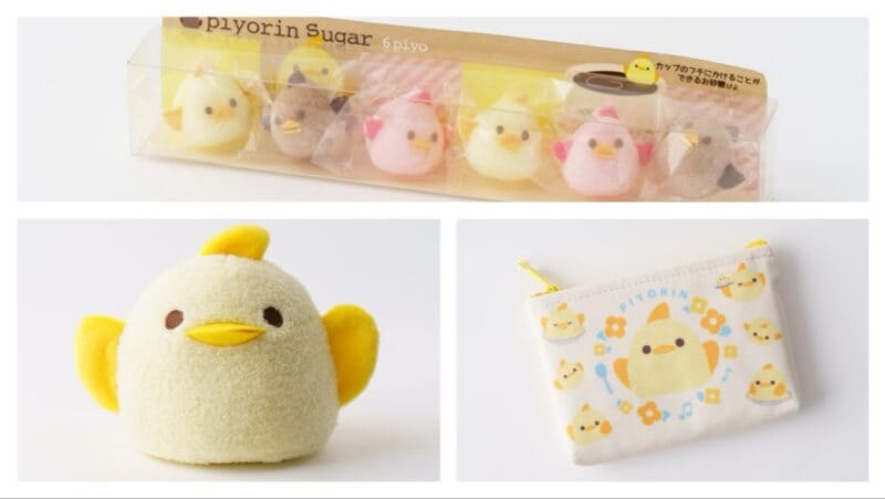 実演販売の横では、ふわもこぬいぐるみ(1,980円)、ぴよりんシュガー(1,200円)、ミニポーチ(550円)などのオリジナルグッズや菓子類なども販売します。自分へのご褒美やギフトにもぴったりです。