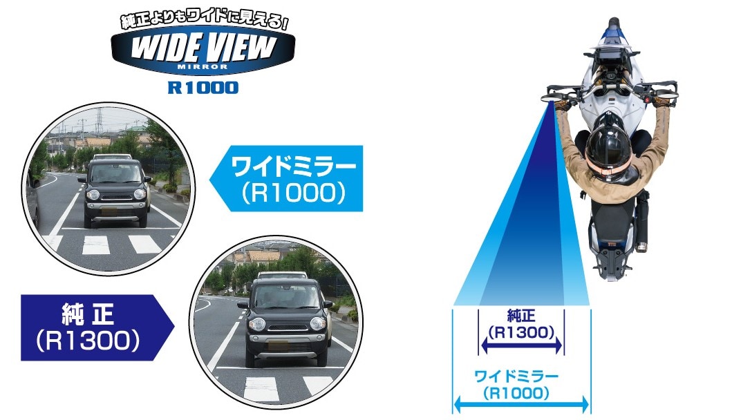 純正より広く見えるR1000鏡
