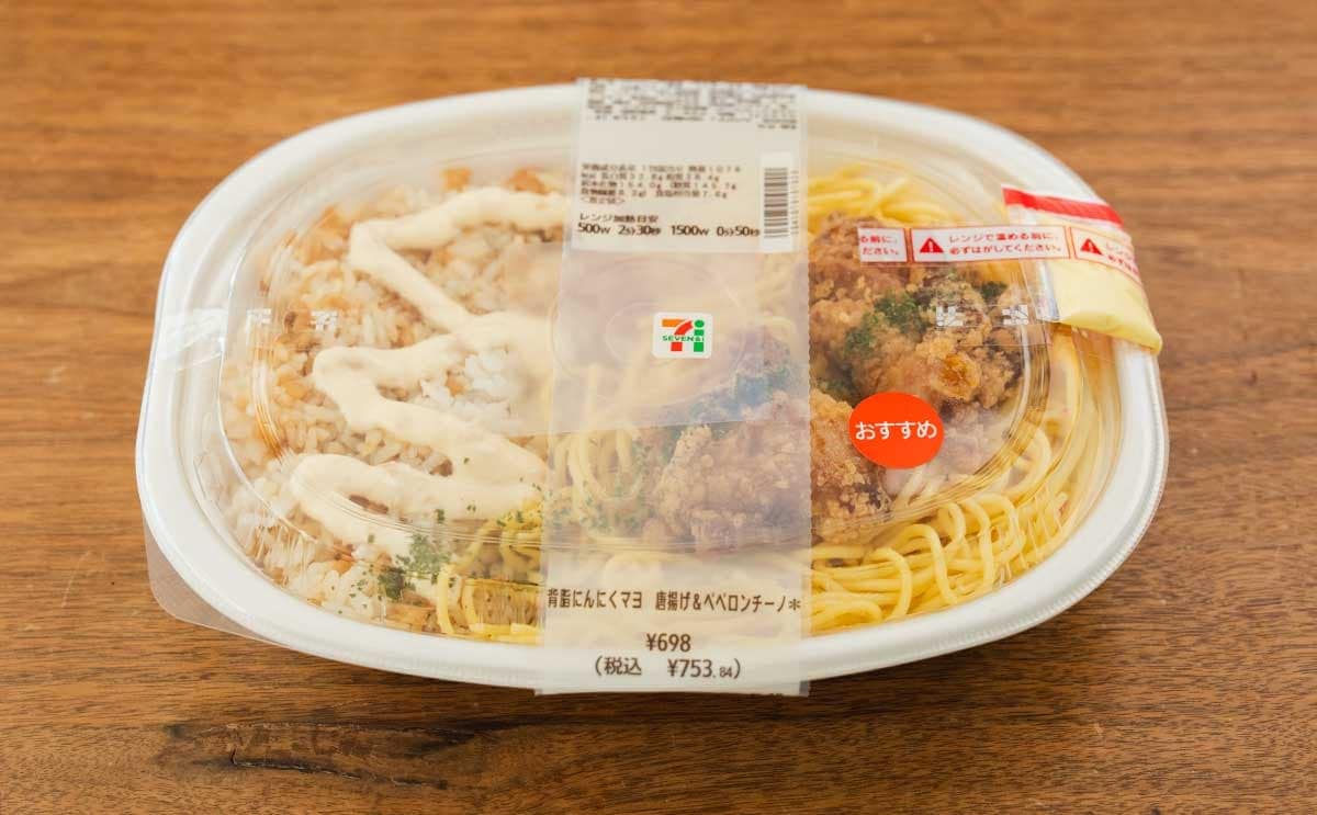 セブン-イレブンは2025年1月6日(火)に、「背脂にんにくマヨ 唐揚げ&ペペロンチーノ」(税込753.84円)を発売しました。