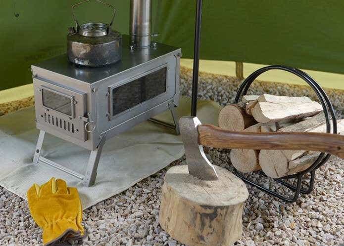 暖をとるだけでなく、天板にやかんを置いてお湯を沸かしたり、天板を外して焚き火料理をしたりと、これからの寒い季節に大活躍。正面とサイドの窓から燃え盛る炎を眺めて癒されたいですね。