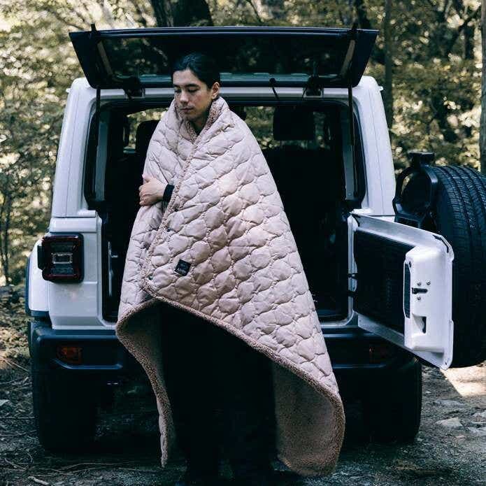 内部に汗を吸湿し熱に変える素材や、断熱効果の高い素材を採用することで保温力をグンとアップしているのだとか。売れに売れているLサイズは、ブランケットとしてはもちろんポンチョや寝袋、ラグやスカートなど幅広く活躍してくれますよ。