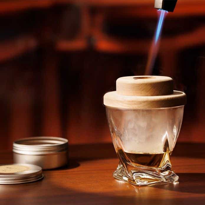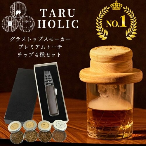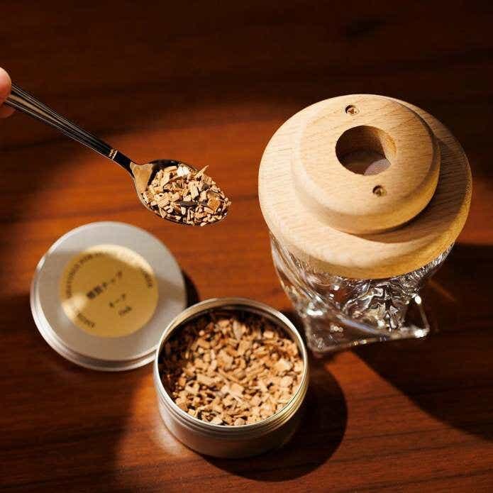 グラスさえあれば気軽にスモークが楽しめる、TARU HOLICの「グラストップスモーカー」。専用のトーチとスモークチップがセットになっているので、ナッツやチーズをはじめウイスキーやソーセージなど、何でも簡単にスモーク!