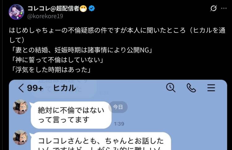 「浮気をした時期はあった」 pic.twitter.com/jYOVE9ZZgn— コレコレ@超配信者😷 (@korekore19) January 6, 2026