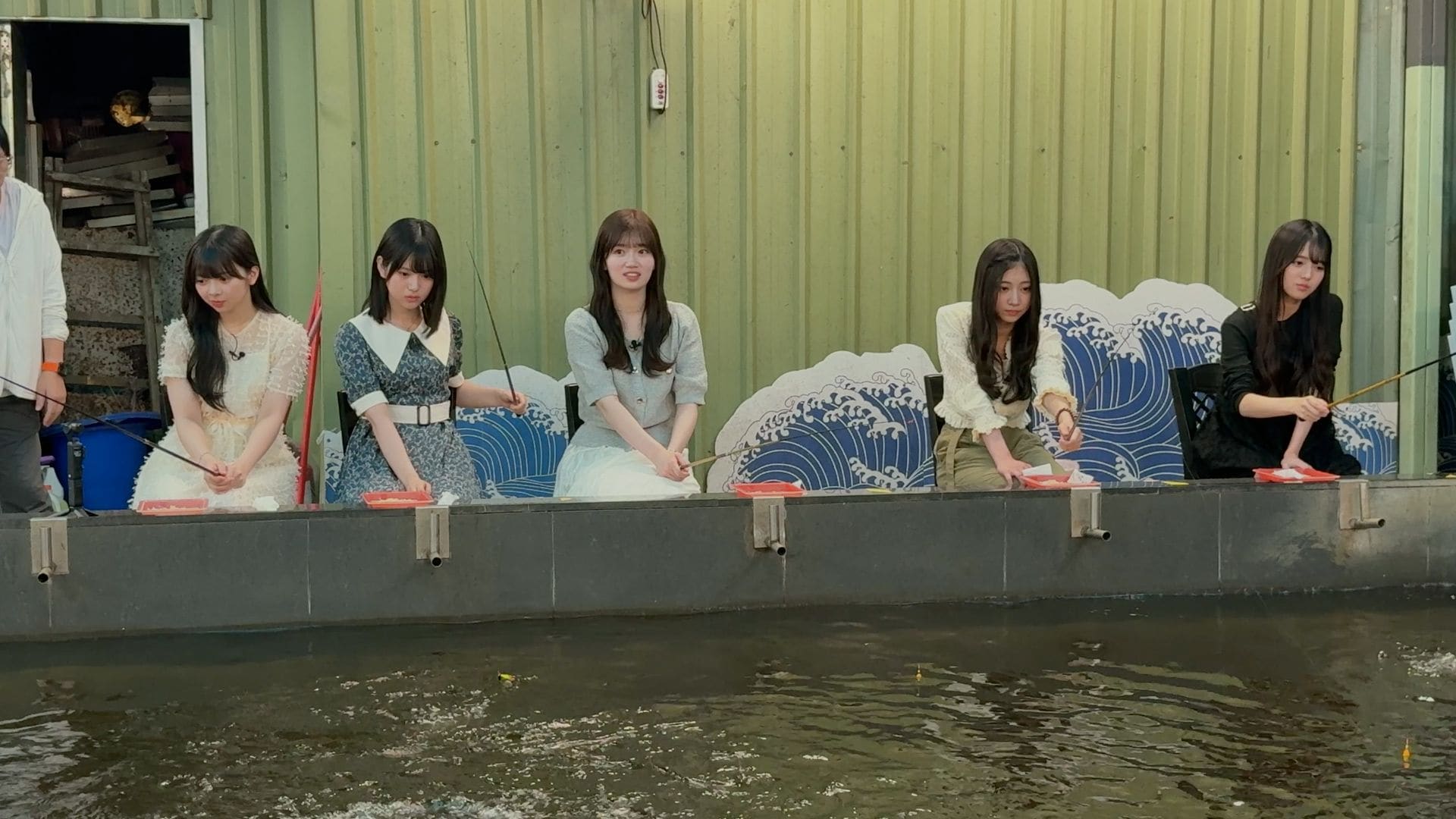 エビ釣りの名人だという通訳のエングンさんにコツを教えてもらい、挑戦するメンバー。15分で誰が一番釣れるのか勝負する。開始2分、川端晃菜が最初のエビを釣り上げた。「えーっ!どうしよう」と、嬉しそうにピースサインを決める川端。その後、瀬戸口⼼⽉も1匹目のエビをゲット。なかなか釣れない⻑嶋凛桜、増田三莉⾳、愛宕⼼響の3人。長嶋はエサを増やす作戦に出た。「エサ増し増し作戦!」と言う、長嶋に「三莉⾳ならひっかかっちゃうね、これは」と愛宕がツッコむ。当の増田は釣り竿を置いてマイペースに釣りを楽しんでいる。エサ増し増し作戦を試みてもなかなか釣れない長嶋を尻目に、瀬戸口は2匹目のエビを釣り上げた。立ち上がって釣りを続ける長嶋&増田&愛宕。ようやく愛宕の竿に動きが…!ようやく釣れたエビに「うわあああ!」と大喜びする愛宕だった。続いて長嶋も釣れた。パニックになりながら紙ナプキンでエビを包むようにしておそるおそるつかむ長嶋。川端も2匹目を釣り上げる。増田は1匹も釣れず、制限時間は終了してしまった。