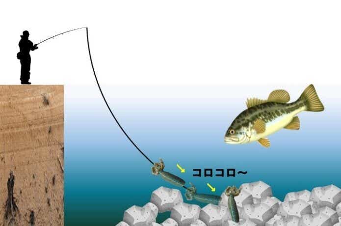 また、ボトムは平坦なところばかりではありません。ワームは着底した後も、その傾斜や起伏によってゆっくりと転がっていきますよね。