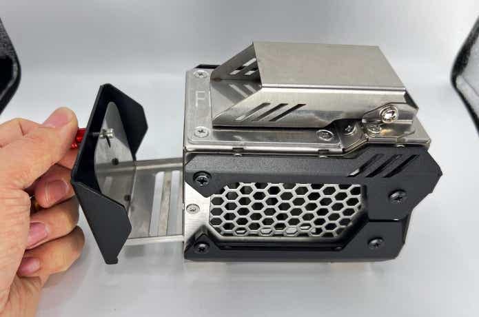 燃焼室まわりは、入口が縦4.5cm×横5.8cm、奥行き11cm。小さい炭や小枝を前提にしたサイズ感なので、燃料の大きさはあらかじめ意識しておくと安心です。