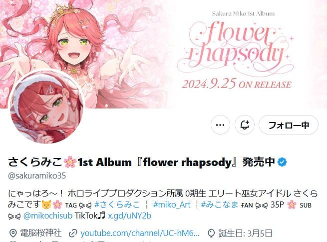 配慮が十分でなかった部分がありご心配をおかけしてしまったことを重く受け止めています。…— さくらみこ🌸1st Album『flower rhapsody』発売中 (@sakuramiko35) January 7, 2026