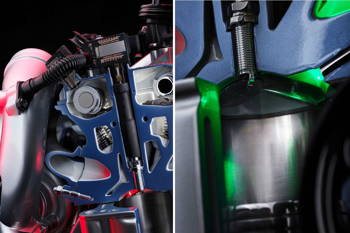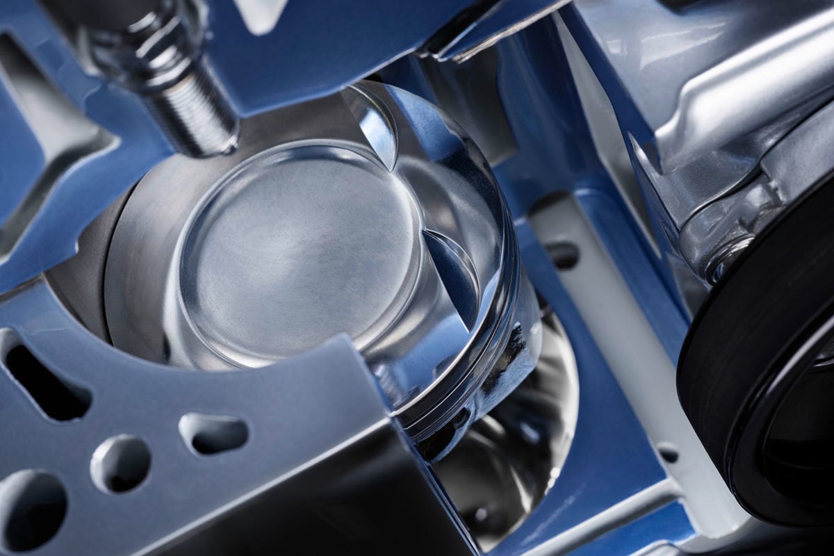 シリンダーの内部はプラズマコーティングされたシリンダーライナー仕上げにより、摩擦抵抗を低減しアルミ製ピストンはオイルチャネルを備えている。