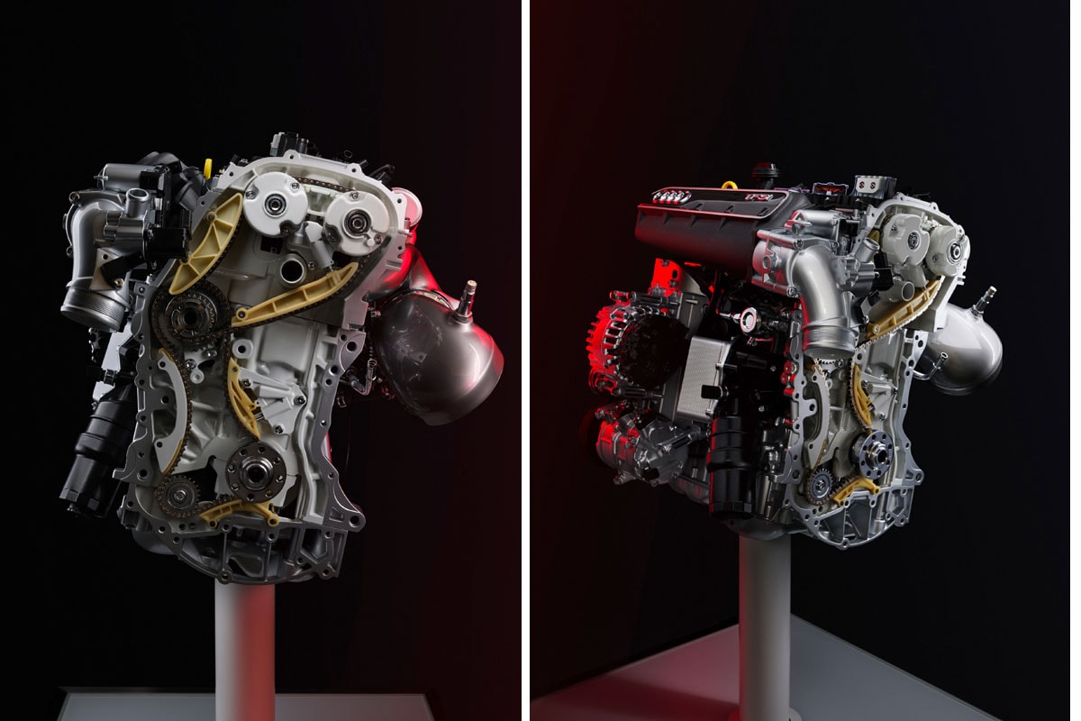 この横置きの高性能5気筒エンジンは2016年にアップグレードされ、軽量化、内部摩擦の低減、そして出力向上を追求し、出力を17%向上させ294kW(400ps)/480 Nmを発生させている。