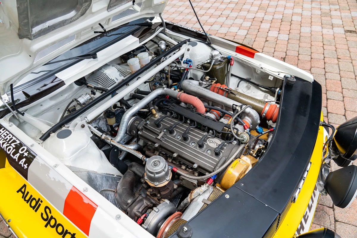 スポーツ クワトロは、新規則のグループBラリーカーのベースとなり、この4バルブ5気筒エンジンは、初期段階から331kW(450ps)を発揮した。1984年シーズン最終戦のひとつ前のレースであるアイボリーコーストラリーで初めて実戦に投入。このラリー前までの11戦は、スウェーデンのスティグ・ブロンクビスト選手が265 kW(360ps)のクワトロ A2でグループBに参戦していた。最終的に彼はドライバーズタイトルを獲得し、アウディはマニュファクチャラーズのダブル世界選手権タイトルを獲得した。
