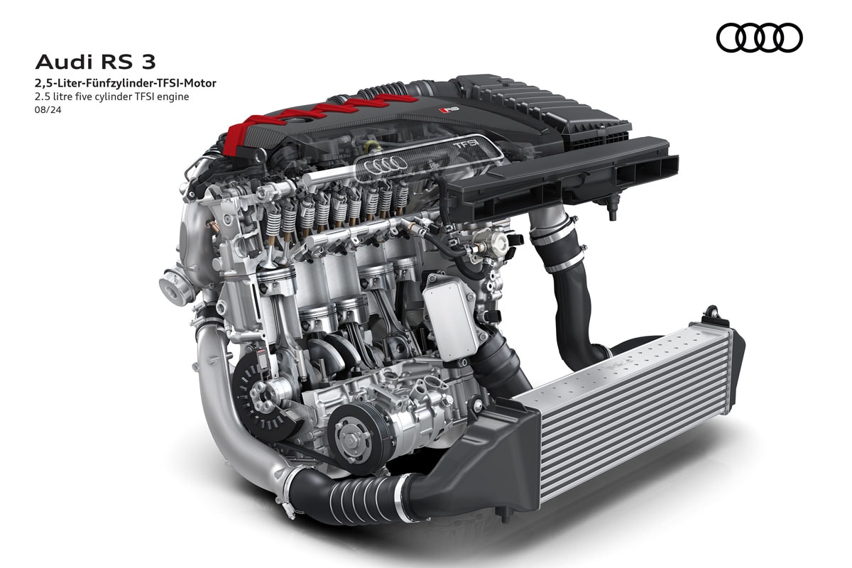 さらに2021年以降RS 3は改良され、より高出力となった2.5 TFSIが搭載された。このエンジンにより、RS 3は0- 100km/h加速は3.8秒となり、最高速度は標準が250km/h(リミッター付き)で、オプションで280 km/hまで向上。またRSダイナミックパッケージとセラミックブレーキ装着時の場合は、最高速度は290km/hとなった。