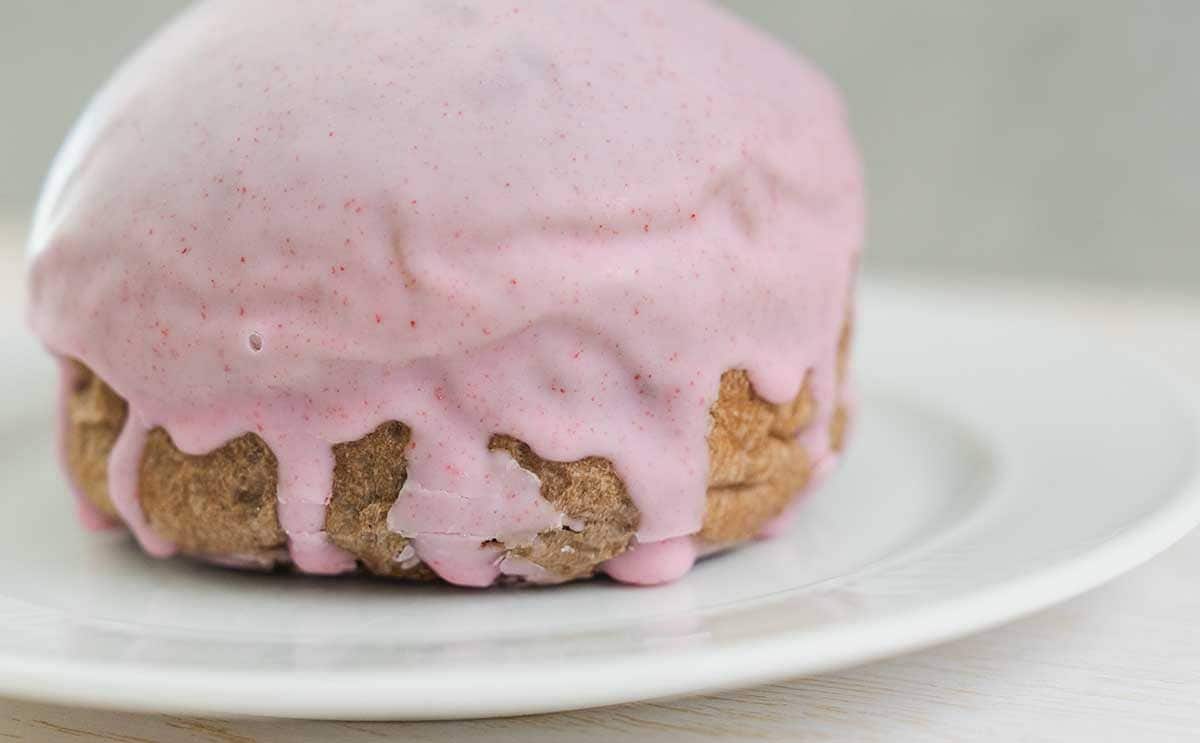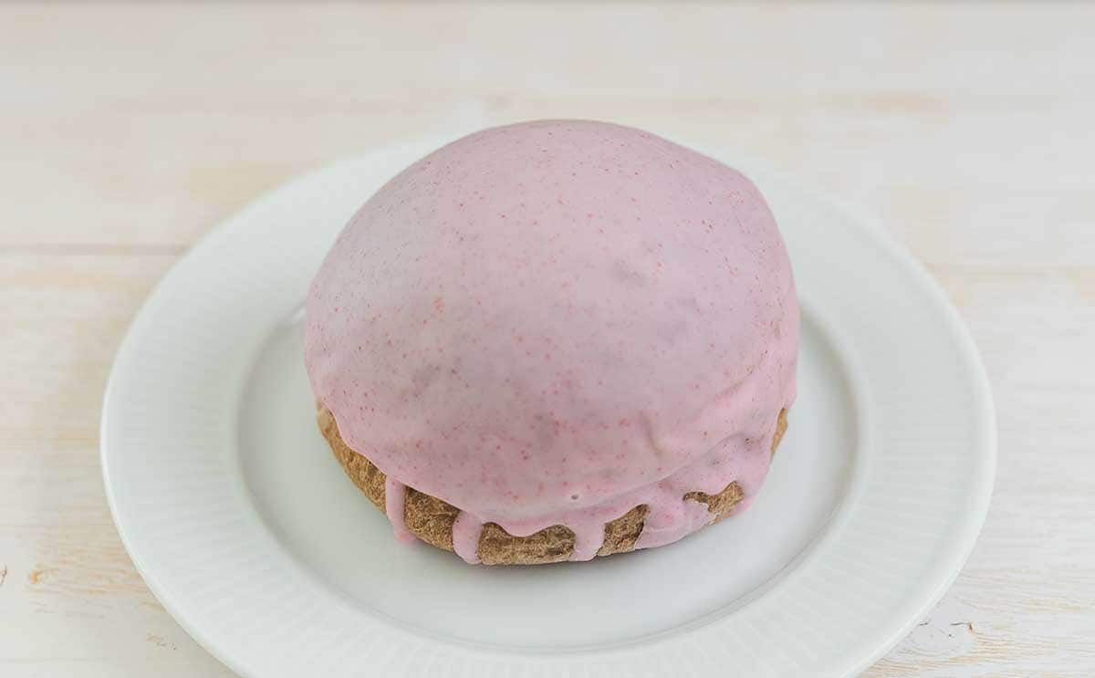 パッケージからパンを取り出してみました。丸みのあるドーム状のパンに、ピンク色のいちごコーチングがかかっていて、とてもかわいい見た目に仕上がっていますね。