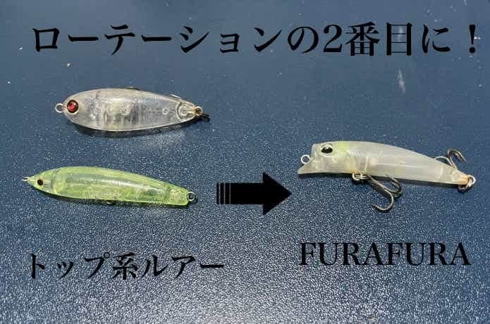 ベイトが何か分からないとき……。あれやこれやと迷ってしまいますが、筆者はフラフラをまず投げてみることが多いです。