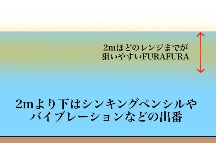 ヒットレンジを探る場合、表層から徐々にレンジを下げていくのが基本。