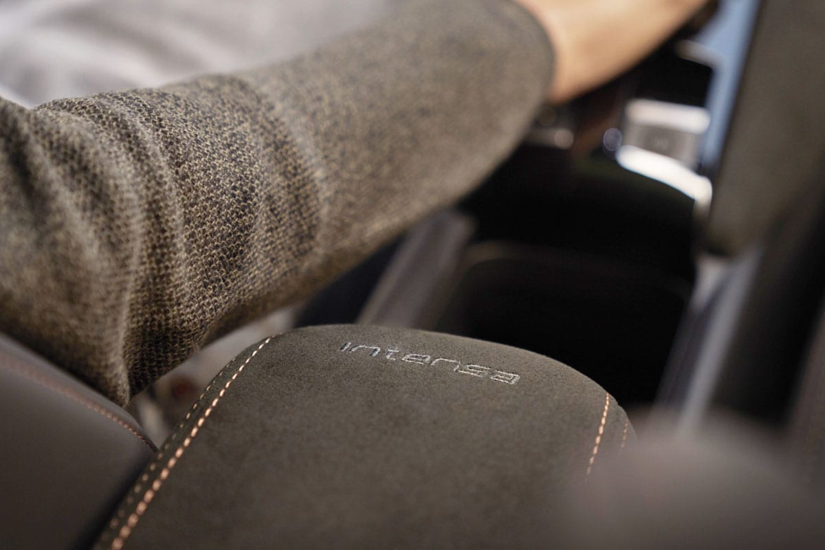 インテリアでは、タンカラー(淡い茶色)のアクセントとアルカンターラ素材を各所に配置。シートやセンターアームレストには「INTENSA」ロゴが刻まれている。