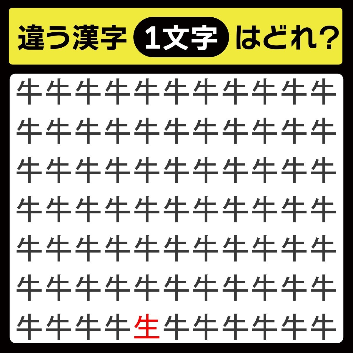 「牛の中に隠れてるのは?」漢字間違い探しで脳トレしよう!【毎日脳トレ】【クイズ】
