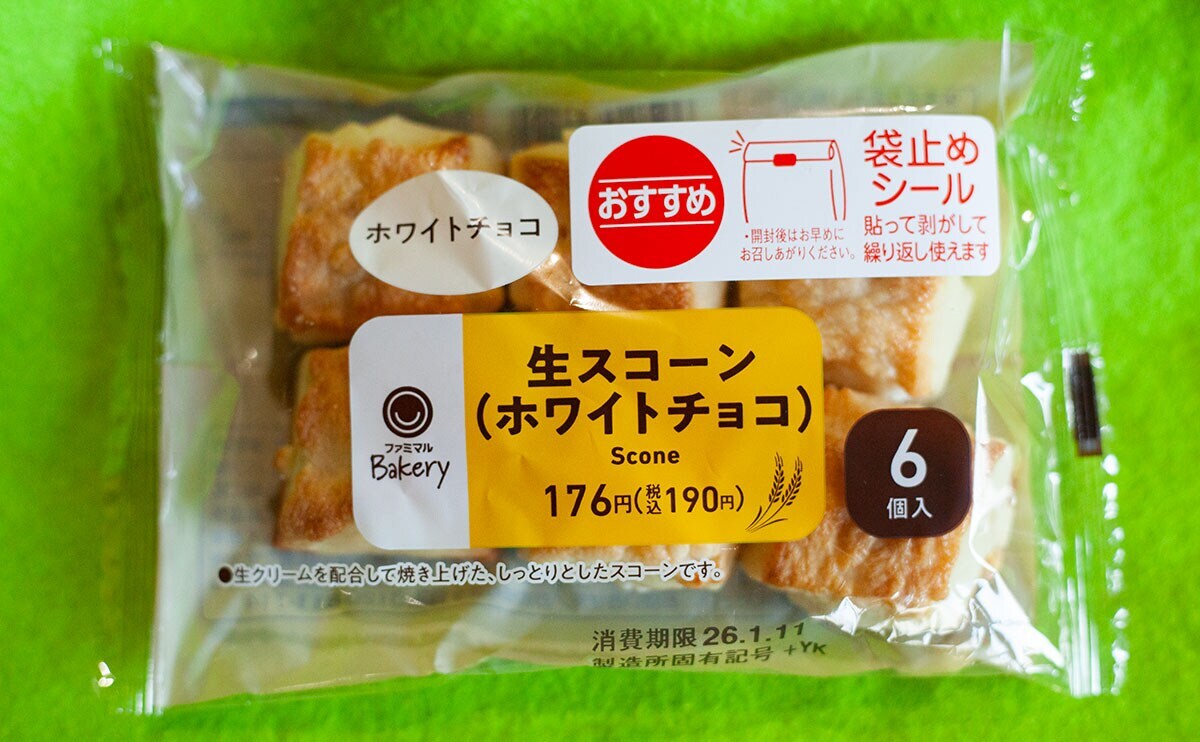 2026年1月6日(火)、ファミリーマートが発売したのが、「生スコーン6個入(ホワイトチョコ)」(税込190円)という新商品です。
