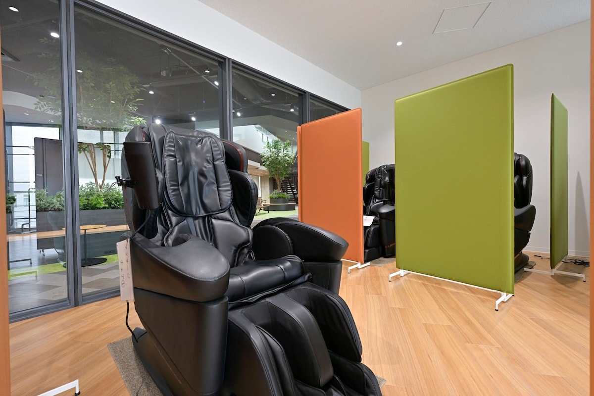 ほいで、疲れたらリフレッシュルームへ。昼寝もできるし、マッサージチェアもある。ランニングマシンで眠気を飛ばしたり、運動不足にならないように。。。いいなぁ