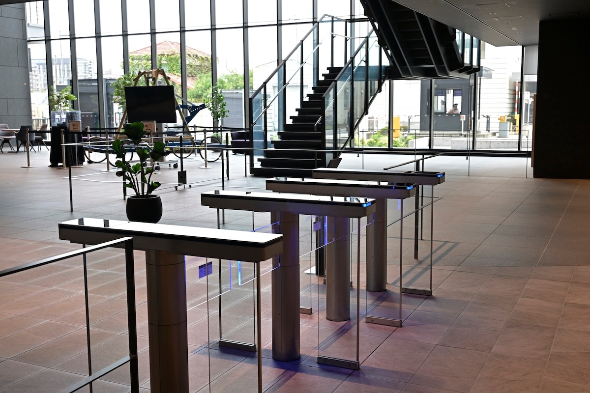 エントランス。昔はここで受付して紙に訪問先と自分の名前変えて、待合スペースで待って・・・ということやってましたが、今は、ピッとカードキーで中へ