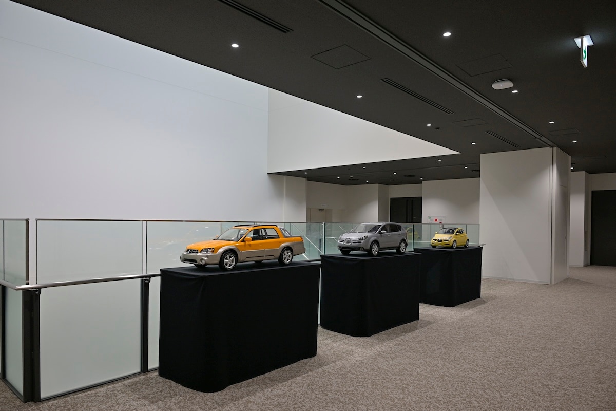 ここは7階です。ホールスペースで講演とか、フォーラムとか、勉強会とか、大勢の人を集めて何かやる時に使うスペース。廊下には珍しいSUBARU・ブラッドやトライベッカのミニカーが・・・