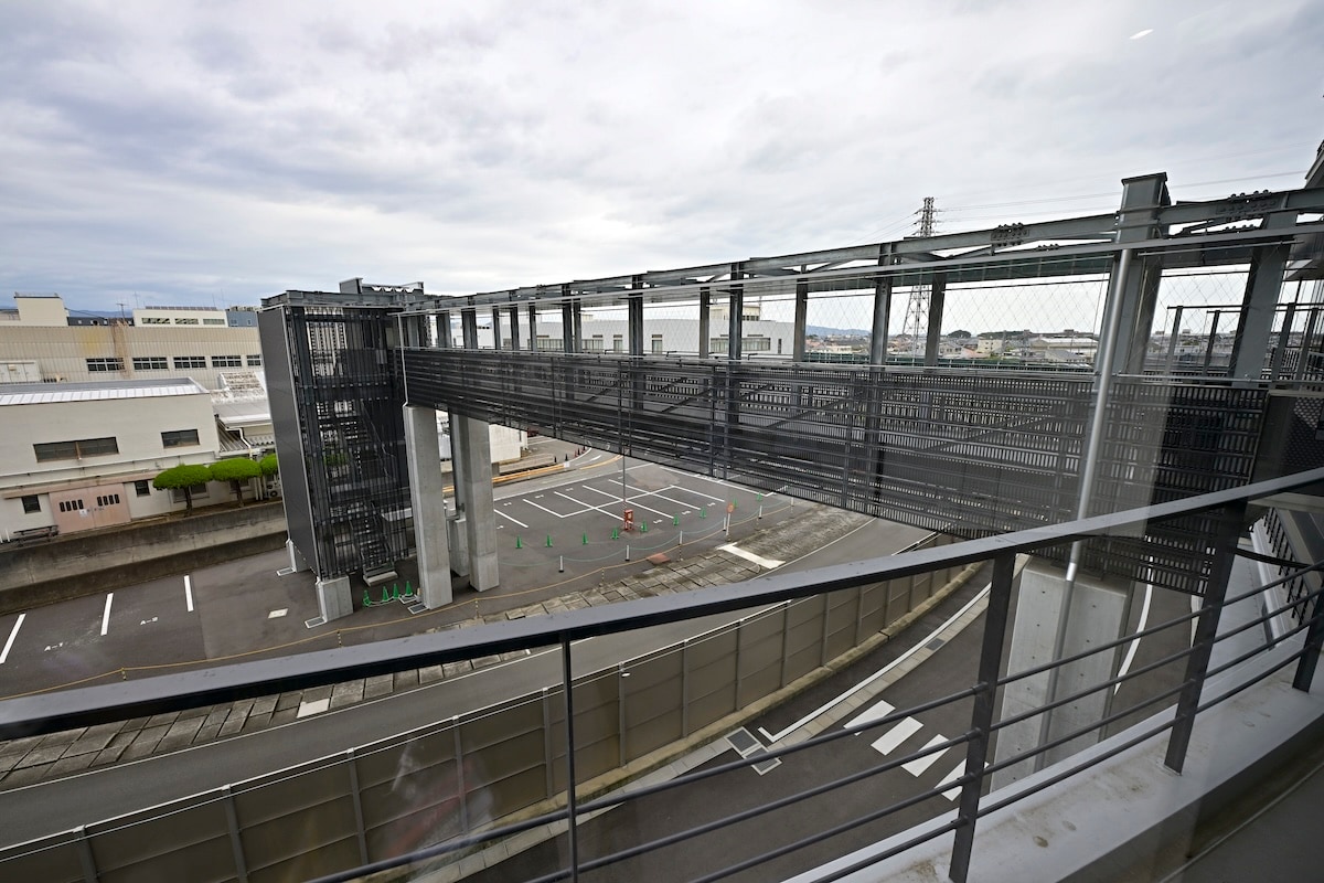 これ、テストコースへのアプローチブリッヂ。メインビルからそのまま橋を渡ってテストコースへ行けます。