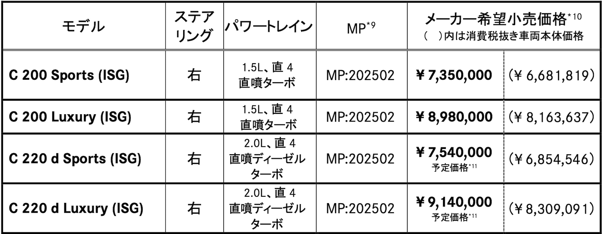 もともとW206のCクラスにはSクラス譲りの新技術を多数搭載し、またインテリアの質感などにも力を入れた高級仕上げとしていたが、今回「C200」と「C220d」にスポーツとラグジュアリーの2タイプをラインアップし、それが装備の見直しをした新しいラインアップになる。