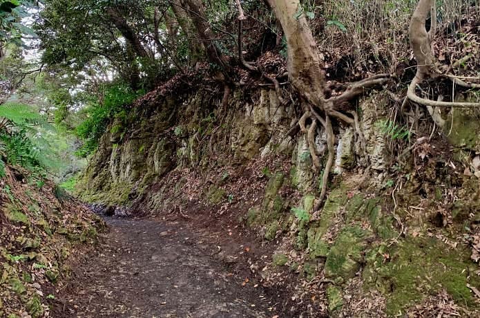 約1時間40分と気軽に楽しむことができる名越切通しハイキングコース。見どころは鎌倉七切通しのひとつ「名越切通し(なごえきりどおし)」といった、歴史を肌で感じることができる史跡です。