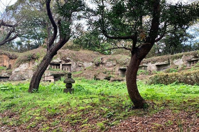 まんだら堂のやぐら群も、このコースの見どころ。 横穴式の墳墓が150以上も並ぶ、まさに鎌倉時代の霊園です。普段は閉鎖されており、春と秋の期間限定で公開されます。