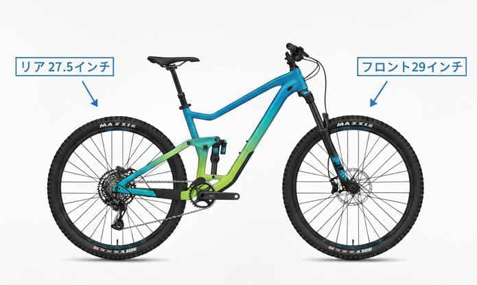 メリット: 前輪が29インチなので大きな段差を乗り越えやすく、後輪が27.5インチなのでコーナーでの振り回しやすさや操作性が両立。