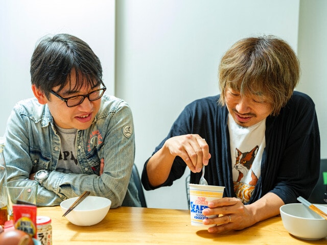 野島 そこで今回はスペシャルゲストとして、ラーメンライターの井手隊長に来ていただきました。プロの意見を参考にしつつ、カップめんでの最強のぶっこみ飯を考案できたらと思いますっ!