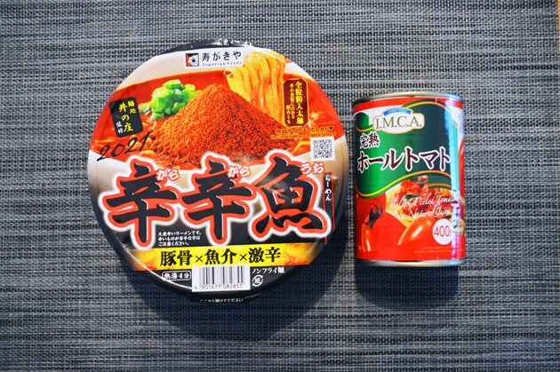 今回の"バカレシピ"は、辛辛魚らーめんにトマトを注入して煮込んだ「限界突破! トマト辛辛魚」!